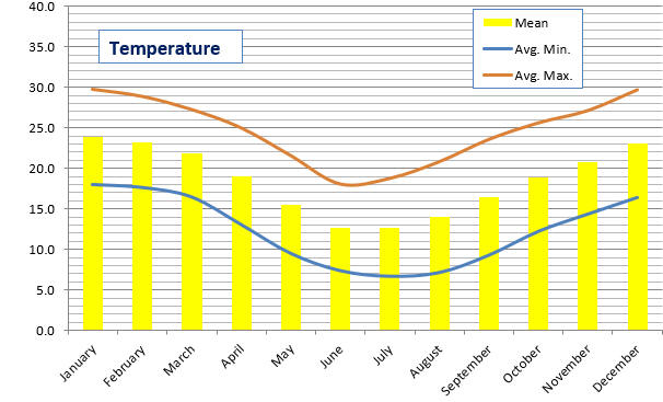Hottest year | 19.6 ºC | 2016, 2017 |